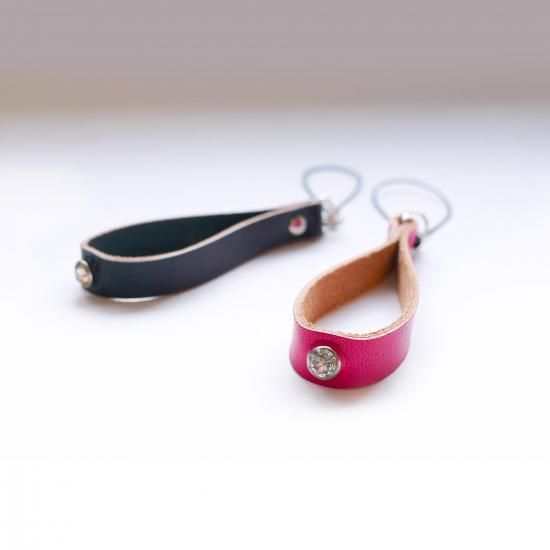 上質な本革に輝くクリスタルストーンが付いており、指にはめた時に上品な指輪のような美しさを演出します。