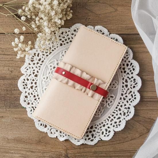 上質なヌメ革に革フリルが付いた、ロマンチックで可愛らしい手帳型iPhoneケースです。