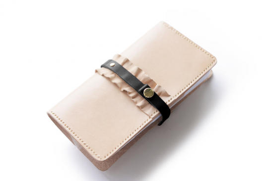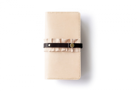 上質なヌメ革に革フリルが付いた、ロマンチックで可愛らしい手帳型iPhoneケースです。
