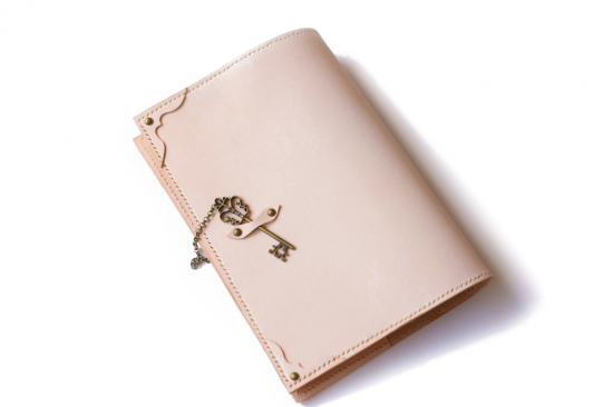 ・革紐とスタッズを、「オトナ乙女☆本革手帳カバー」のような感じで追加。